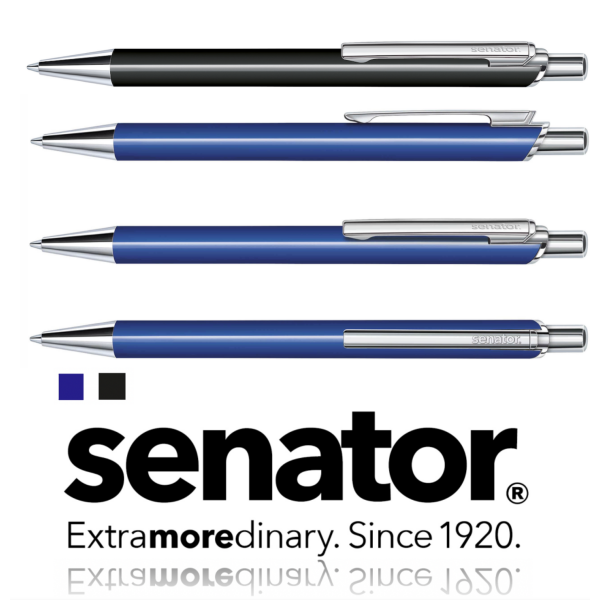 Een mooi reclameartikel voor op het bureau. Senator Arvent Glossy balpen, beschikbaar in de kleuren zwart en blauw. De houder is van gelakt metaal, de beslagdelen zoals de drukker, clip en clip zijn van glanzend verchroomd metaal. Geschikt voor een optimale weergave van uw logo, reclame of tekst. Naar keus gravure of kwaliteitsbedrukking in kleur. Te bestellen vanaf 50 stuks, eventueel met een bijpassende geschenkverpakking of etui. Een premium design voor een scherpe prijs.
