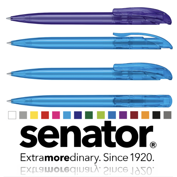 Voor deze pen is het geen uitdaging om uw logo of tekst te plaatsen. De Challenger Clear balpen heeft ruime drukmogelijkheden op de houder, waarbij ook clipbedrukking mogelijk is. De Challenger balpen is van het Duitste topmerk Senator. Er zijn verschillende uitvoeringen van de Challenger. Dit is de Challenger Clear balpen. Dit betekent dat de houder en de clip afgewerkt is in transparant hoogglans. De binnenkant van de houder en het mechanisme is daardoor zichtbaar. Leverbaar in maar liefst 15 kleuren. De pen is de beste keuze voor wie houdt van schrijven met een iets grotere kwaliteitspen. Voorzien van een Senator Magic Flow vulling, geschikt voor circa 5 kilometer schrijfplezier. Na gebruik is de vulling eenvoudig te vervangen. Deze poplulaire balpen is een echte eyecatcher en ideaal voor een uitmuntende merkpresentatie.