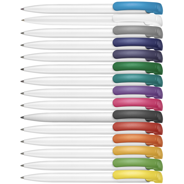 Populaire balpen in matte hardcolor uitvoering. Naar keuze balpen in één kleur of zelf de kleuren samen stellen voor de twee delen van de houder en de clipdrukker (mogelijkheid tot gebruik van drie verschillende kleuren in één pen). Groot drukformaat en kwaliteitsvulling Jogger.