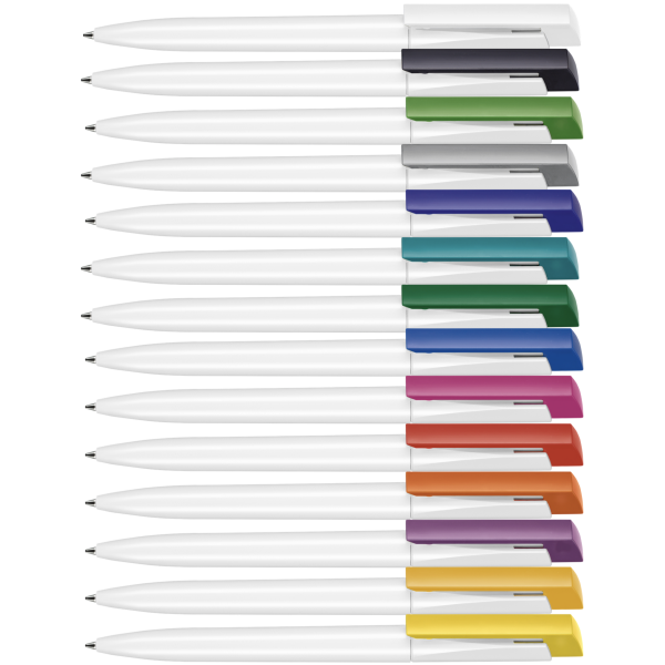 | Omschrijving | Kwaliteitsbalpen met tweedelige houder en geïntegreerde clipdrukker. Drukbalpen in glanzende hardcolor uitvoering, in één kleur of kleuren combineren. Met groot drukformaat en Jogger Soft vulling. Weergegeven prijs is incl. 1 kleur bedrukking op de houder. |