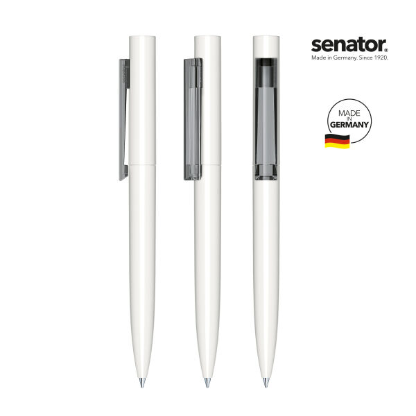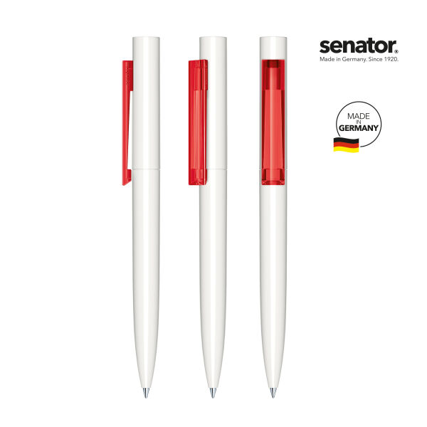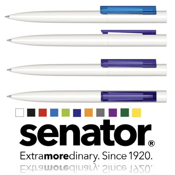 Fraaie balpen van het A-merk Senator. Duitse degelijkheid voor een scherpe prijs. Dit nieuwe model heeft een elegant ontwerp met puristisch karakter. Ook leverbaar in Clear basic uitvoering en Soft touch uitvoering. Dit is de polished uitvoering, in hoogglans, met een transparante clip. Balpen met draaimechaniek. Voorzien van zwarte of blauwe Senator Magic Flow vulling, voor soepel schrijven. In de snelle leveringsservice kunnen we deze pen levering in 7 werkdagen. Ruime drukmogelijkheden, waaronder digitale clipbedrukking of full colour druk. Groot drukformaat, geschikt voor hoge- en kleurrijke logo's. Elegant en geometrisch design voor een buitengewone reclameboodschap. Te bestellen v.a. 500 stuks.