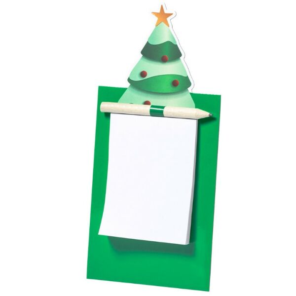 Het Lary notitieblok brengt de kerstsfeer direct uw keuken of werkplek in. Het magnetische ontwerp in de vorm van een speelse kerstboom kleeft moeiteloos op koelkasten, kasten of andere metalen oppervlakken, waardoor u altijd een notitie binnen handbereik hebt. Met 40 blanco vellen is dit blok perfect voor boodschappenli... → Lees meer