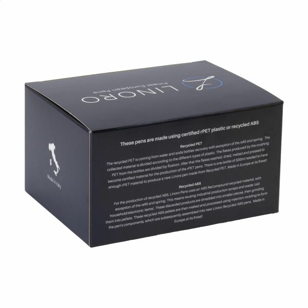 De nieuwe prachtige en duurzame blauwschrijvende balpen van Linoro, gemaakt van gerecycled PET. Voor de productie van één Linoro Wave balpen wordt één PET-fles hergebruikt. De brede matte houder in combinatie met de glanzende drukknop en geïntegreerde clip zorgt voor een moderne uitstraling en veel ruimte voor bedrukking. Gemaakt in Italië.