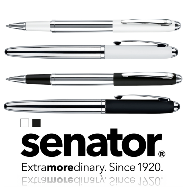 Luxe, zware metalen Nautic rollerbalpen van het Duitse topmerk Senator. Design balpen met een harmonisch samenspel van twee verschillende materialen. Bovenzijde in soft touch uitvoering, onderzijde glanzend verchroomd. Opvallende reclamebalpen met blauwe Magic flow rollerbalvulling. Na gebruik is de vulling te vervangen. Met zilverkleurige metalen accenten en metalen clip. De kwaliteitspen Nautic is ook beschikbaar als balpen en touch pen, voor het bedienen van touchscreen apparaten. Als set te combineren met de Nautic balpen of de Nautic touchscreen pen. Bijpassend geschenketui op aanvraag.