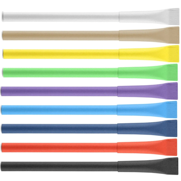Gekleurde papieren ecologische balpen met dop. Verkrijgbaar in 8 kleuren.