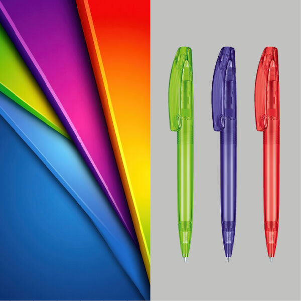 De Bridge Clear balpen heeft uitstekende drukmogelijkheden. Rondomdruk maakt het mogelijk om logo en tekst voordelig in één drukgang te plaatsen. Op de clip is tot in full colour te bedrukken.