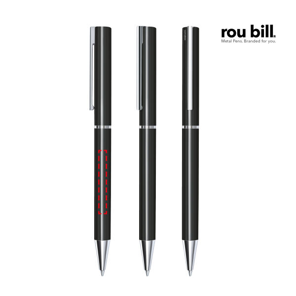 | Bedrukkingsinformatie | Standaard met kwaliteitsbedrukking op bovenstuk van de pen, direct naast de clip, op maximaal 30 x 10 mm, maximaal 1 drukkleur. Op bovenstuk met gravure op maximaal formaat van 40 x 5 mm. Standaard met kwaliteitsbedrukking op onderste gedeelte, direct vóór de clip, op maximaal 40 x 10 mm, maximaal 1 drukkleur. Met gravure op maximaal 50 x 5 mm. |