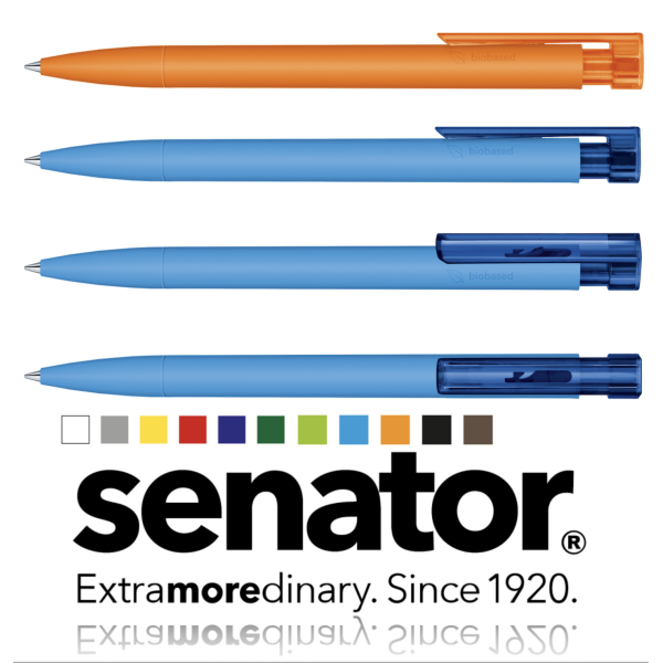 Modern ontwerp van het Duitse merk Senator. De Liberty Bio balpen is een slanke, matte hardcolor balpen met rechte clip in transparante uitvoering. De combinatie van hardcolor en transparante materiaaloppervlakten zorgt voor een opvallende indruk van uw reclamegegevens. Deze balpen is uiterst milieuvriendelijk. Het lange gedeelte van de pen en het neusje is gemaakt van biomateriaal, ook wel bio-based kunststof genoemd. Dit zogenaamde PLA wordt gewonnen uit suikerriet. De al reeds gereduceerde CO2-uitstoot voor dit product wordt gecompenseerd door investeringen in klimaatbeschermingsproducten. Klimaatneutraal geproduceerd. In diverse kleuren leverbaar v.a. 500 stuks. Diverse drukopties, waaronder op de top van de pen. Het plaatsen van logo en/of tekst is mogelijk op houder en op clip. Voorzien van een kwaliteitsvulling Magic Flow, naar keuze blauw of zwartschrijvend.