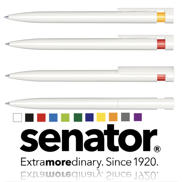 Voel de vrijheid voor het plaatsen van logo, tekst of afbeelding met kleurrijke details op de Liberty Polished Basic balpen. De Liberty balpen is een balpen uit de collectie van het Duitse topmerk Senator. Een ontwerp dat klasse uitstraalt door eenvoud. Een design in zijn puurste vorm, rechttoe, rechtaan. Deze pen is leverbaar in 10 kleuren, waarbij de houder en clip telkens glanzend wit is en de ring onder het clipgedeelte transparant gekleurd. De Liberty is in meerdere uitvoeringen leverbaar, dit is de polished basic versie. Deze uitvoering is uitermate geschikt voor het plaatsen van kleurrijke ontwerpen en foto's op een groot drukformaat. Uiteraard kan de pen ook per kleur gedrukt worden op een ruim drukformaat. Deze all-time favoriet biedt daarmee voldoende ruimte voor al uw drukwensen. Drukbalpen met Senator Magic Flow jumbovulling voor 5 kilometer schrijfplezier. Naar keuze zwarte of blauwe vulling.