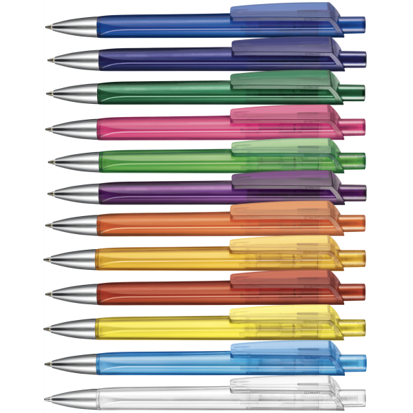 | Omschrijving | Drukbalpen in ergonomische driehoeksvorm. In transparante uitvoering. Weergegeven prijs is incl. 1 kleur bedrukking op de houder. Kies één van de standaardkleuren of combineer drie kleuren in één pen. Kies een kleur voor de drukker, de houder en de clip en creëer je eigen unieke pen. Met groot drukformaat en kwaliteitsvulling Ultra, voor 6000 meter schrijfplezier. |