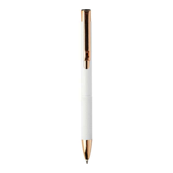 Deze pen laat uw logo stralen en uw glimlach reflecteren! De Wicked Sparkle balpen is een keuze voor iedereen die houdt van elegantie. Het gerecyclede aluminium geeft de pen een stevige basis, terwijl de matte afwerking en het fijne gripgedeelte zorgen voor extra comfort tijdens het schrijven. De gouden details maken het... → Lees meer